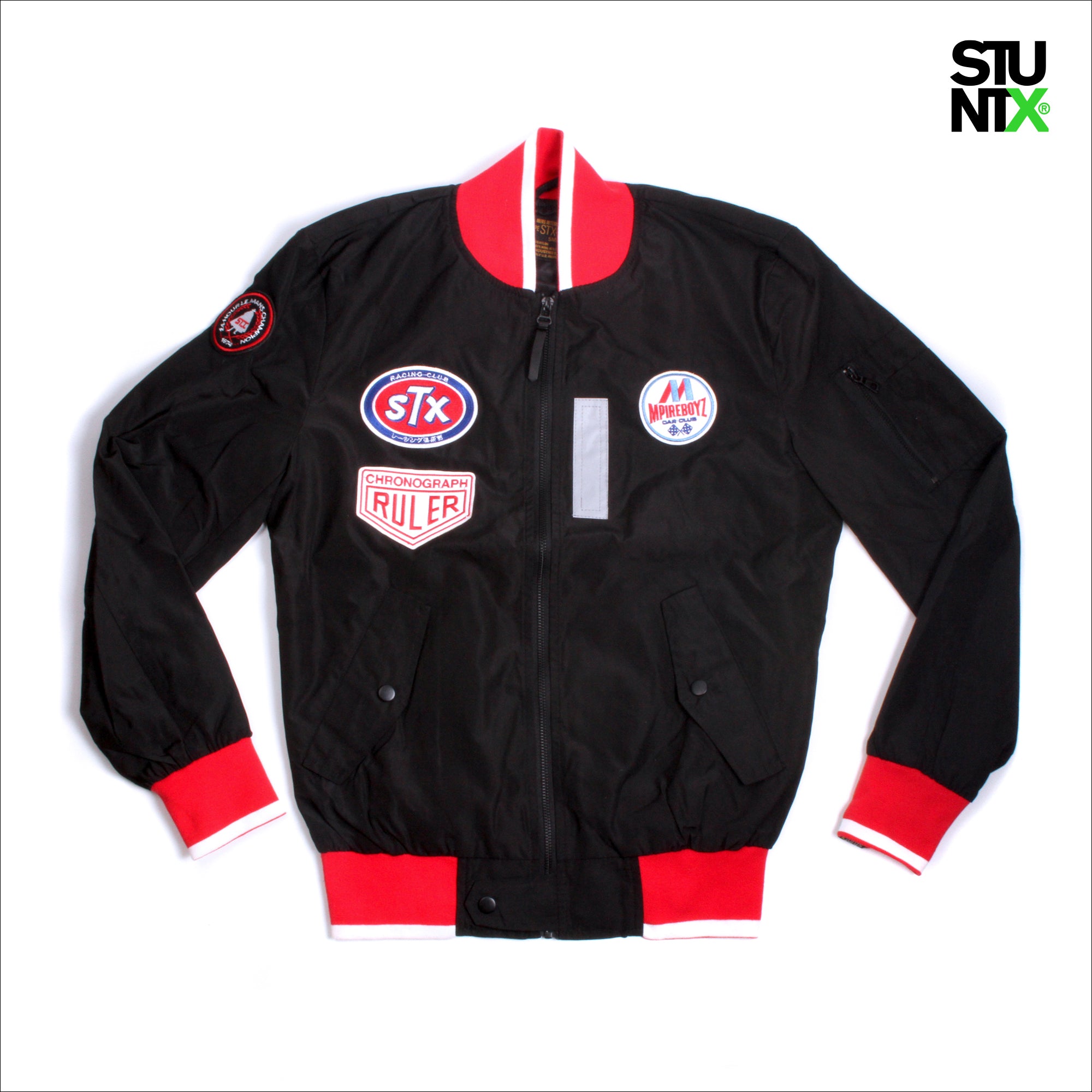 The STUNTX® Team Jacket features a nylon shell with custom ribbing and embroidered patches.